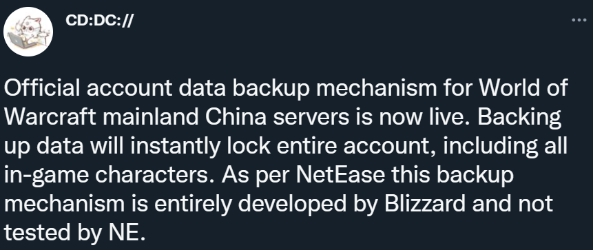 NetEase заявила, что инструмент для резервного копирования персонажей World of Warcraft был создан исключительно самой Blizzard.