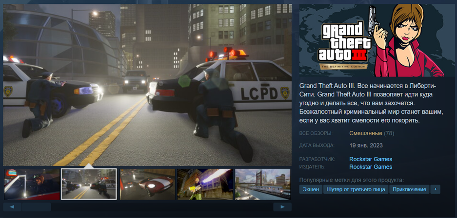В Steam тихо выпустили Grand Theft Auto the Trilogy the Definitive Edition. Ремастеры GTA San Andreas, GTA Vice City и GTA 3 выпустили без новых патчей.