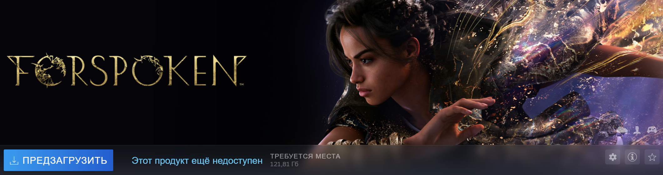 В Steam началась предзагрузка Forspoken и подтвердился внушительный размер игры 121.81 ГБ (в системных требованиях 150 ГБ). На PlayStation 5 предзагрузка должна начаться 22 января, ожидаемый размер составляет 87.275 ГБ.
