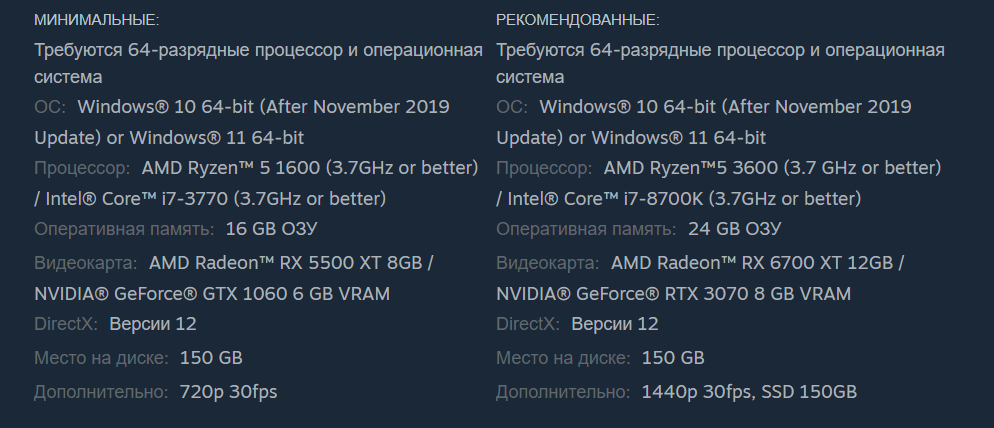 Forspoken стала игрой для консоли нового поколения PlayStation 5 и ПК. Судя по системным требованиям, для 30 FPS в 1440p потребуется NVIDIA GeForce RTX 3070.