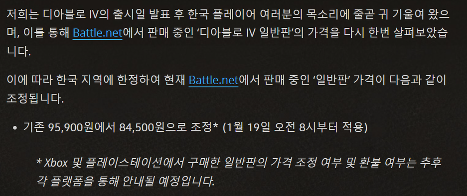 Blizzard заявила, что изменение цен связано с тем, что она услышала мнение южнокорейских игроков. Есть и альтернативное мнение о причинах изменения ценовой политики в Южной Корее.