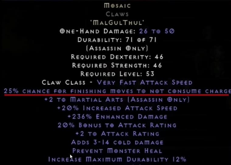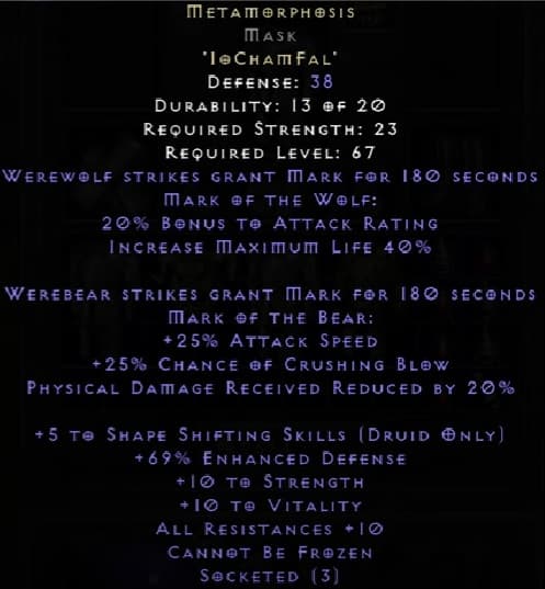 Первое – Узор (Mosaic) вставляется в когти с тремя гнёздами для Ассасина, а второе, Метаморфоза (Metamorphosis), в шлем с тремя гнёздами и подойдёт Друиду.