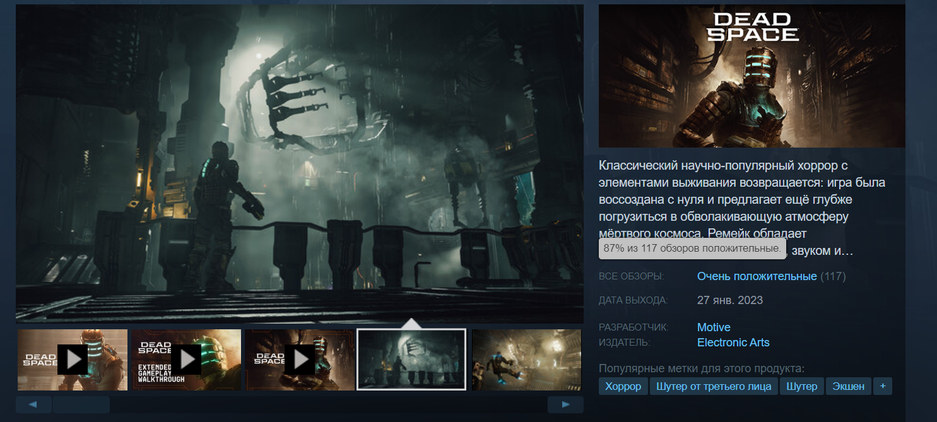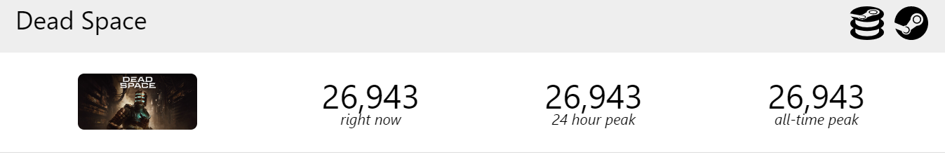 Ремейк Dead Space стартовал в Steam бодрее, пиковый онлайн более 26 тысяч игроков.