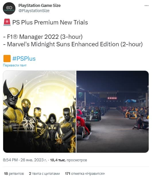 F1 Manager 2022 от Frontier Developments набрала 78% - в неё можно играть в течение трёх часов, а Marvel's Midnight Suns от Firaxis Games получила оценки в районе 83% - с ней можно знакомиться в течение двух часов.