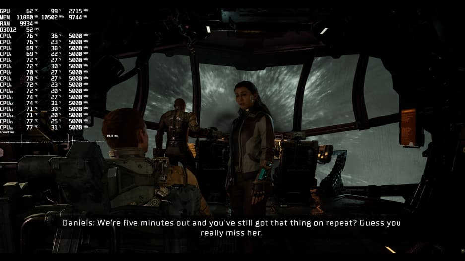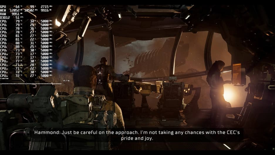 Внутри Ишимуры ситуация получше, но всё же встречаются просадки частоты кадров. Получается, что с GeForce RTX 4090 желанные 60 FPS можно наблюдать не всегда и не везде.