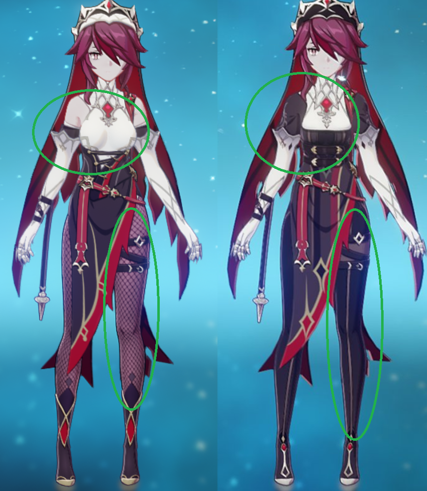 Ранее в Genshin Impact цензуре подвергли облики Эмбер, Розарии, Моны и Джинн. В Китае целомудренные облики установили по умолчанию, а другим предложили их в качестве альтернативы.