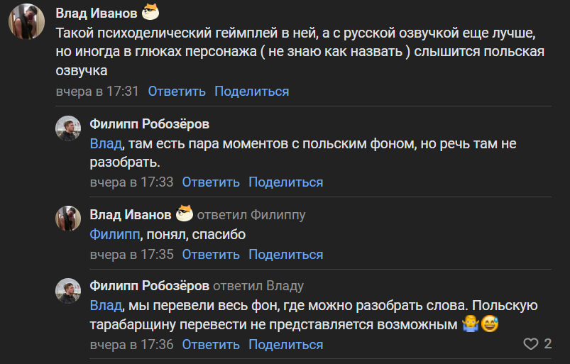 Пользователи отметили, что в русской озвучке присутствует польский след. Это обусловлено тем, что коллектив GamesVoice не смог перевести абсолютно всё, т.к. некоторые реплики (польскую тарабарщину) попросту не смогли разобрать.