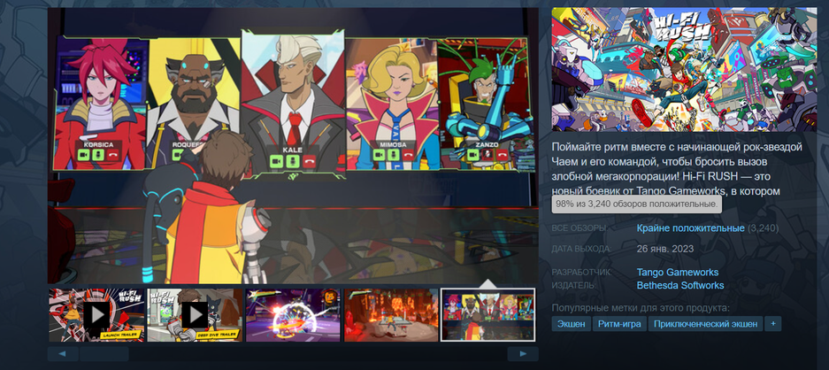 Спустя несколько дней у Hi-Fi Rush в Steam 98% положительных отзывов из более чем 3 тысяч.