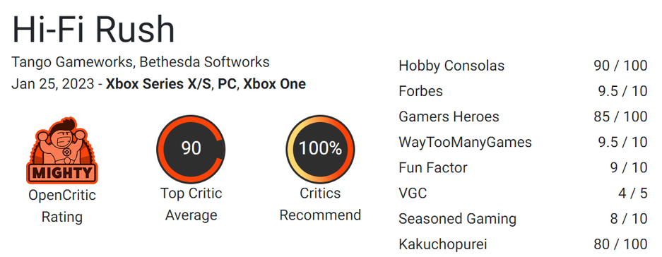 Hi-Fi Rush получила на OpenCritic 90 баллов из 100.