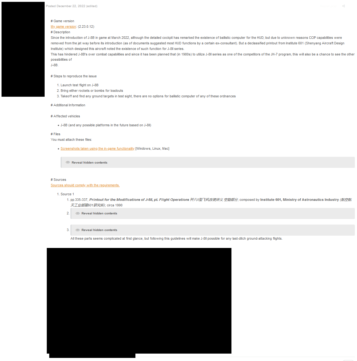 Пользователь RycotSS заметил очередную утечку на форуме War Thunder. На этот раз это секретные данные об истребителе-перехватчике J-8B.