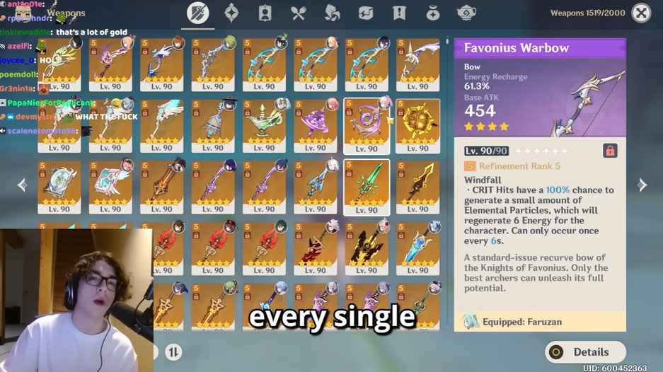 Донатер вложил в Genshin Impact более 100 тысяч долларов (или свыше 7 миллионов рублей). Он решил похвастаться коллекцией.