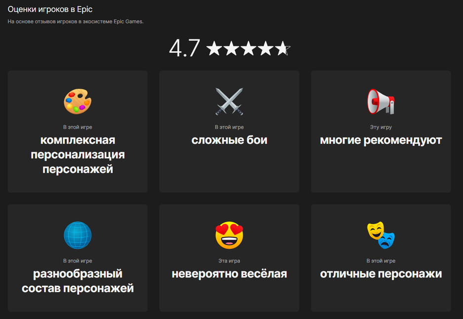 У Darkest Dungeon 2 в Epic Games Store оценка 4.7 из 5. Текстовых обзоров, как в Steam, тут нет.