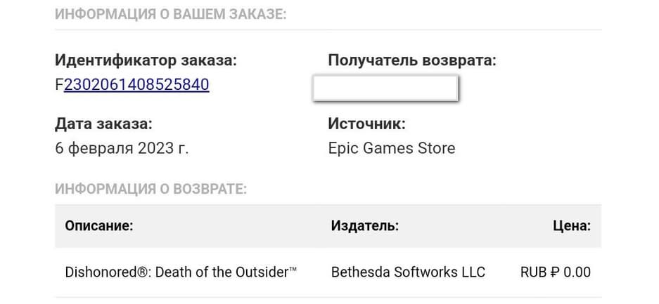 Epic Games Store в принудительном порядке оформляет для игроков из России и Беларуси возвраты на Dishonored: Death of the Outsider, которую они получили в рамках раздачи на прошлой неделе.