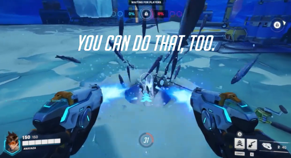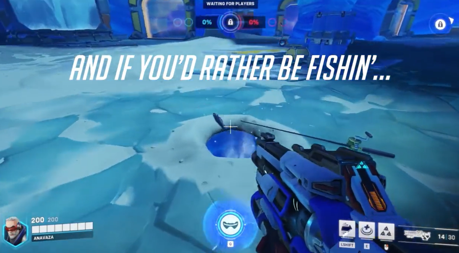 Разработчики Overwatch 2 оставили возможность порыбачить, но рыбалка «огнестрельная». Надо подойти к лунке и пострелять, чтобы добыть рыбку (при этом удочка лежит рядом).