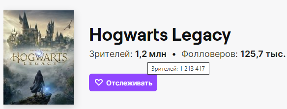 Hogwarts Legacy отобрала у Cyberpunk 2077 пальму первенства по количеству зрителей среди одиночных игр. В определенный момент за приключениями волшебников в мире чудес и магии наблюдало свыше 1,200 человек, когда в мир не столь далекого будущего победившего капитализма в свое время отправились 1,140 миллиона.