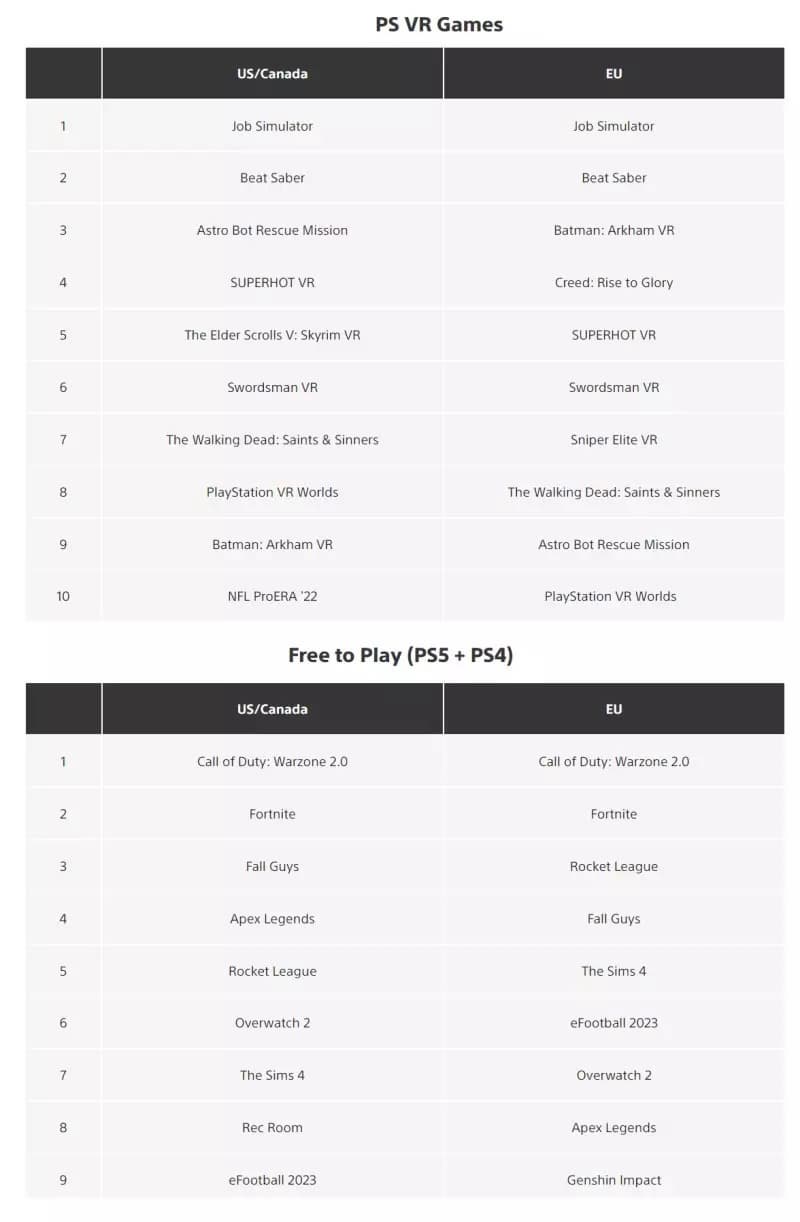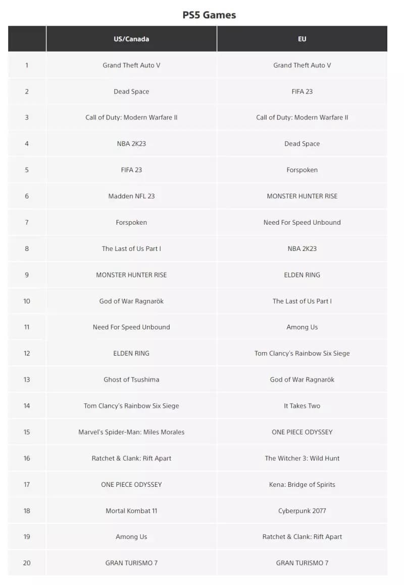 Dead Space стала второй по количеству загрузок игрой в США и Канаде, а в Европе оказалась четвёртой. Forspoken также хорошо стартовала, попав в десятку лучших в обоих списках, что, учитывая качество и негативные отзывы после выхода демоверсии, можно считать успехом. Monster Hunter Rise также отметилась хорошим стартом.