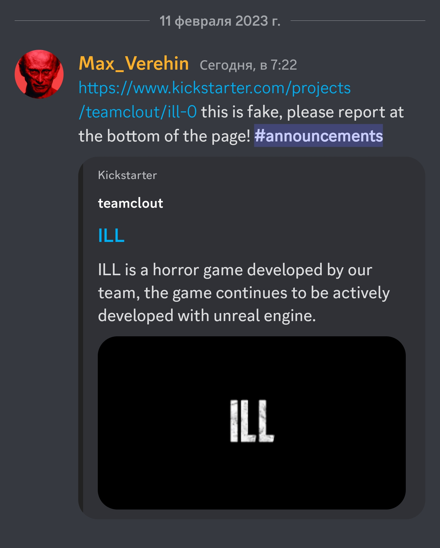 Как оказалось, сбор средств стал открытием и для тех, кто причастен к созданию игры. Максим Верёхин сообщил, что страница хоррора ILL на Kickstarter — поддельная. Работа над ILL продолжается.