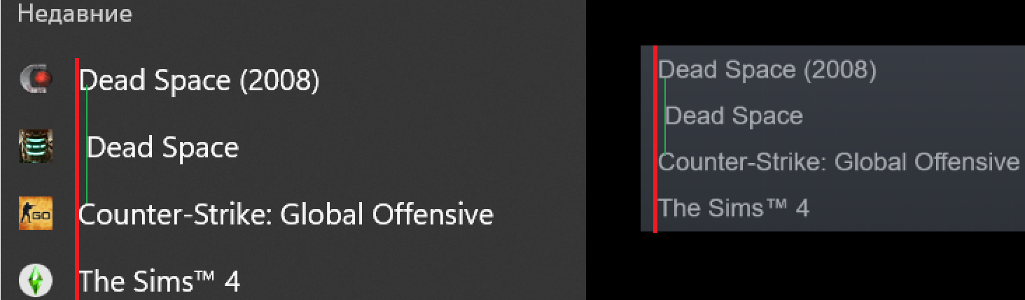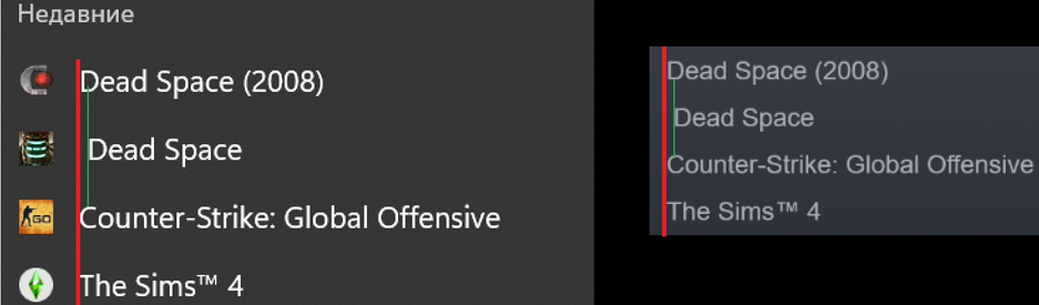 Если попытаться провести линии вдоль названий, то можно заметить, что у названия ремейка Dead Space явно есть лишний отступ. У оригинальной Dead Space 2008 года такой проблемы нет.