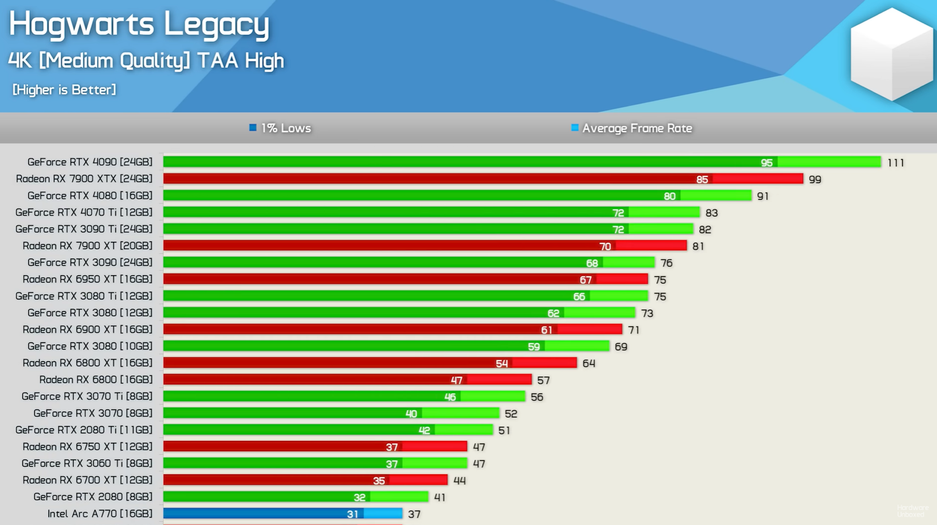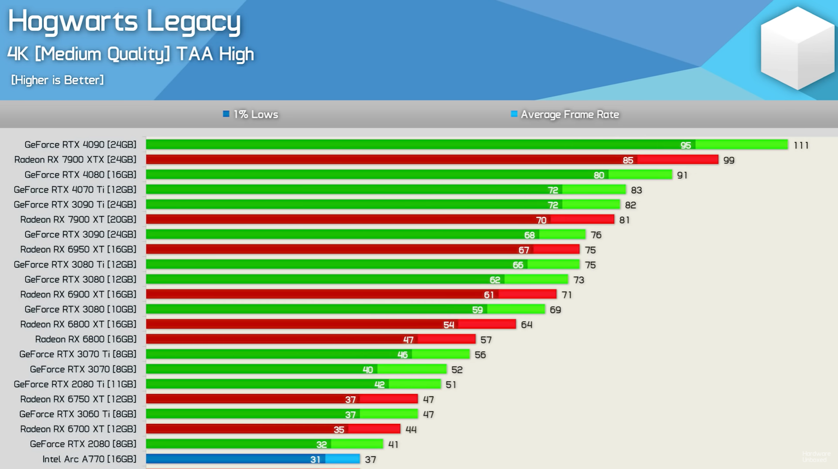 Желающим играть в Hogwarts Legacy в 4К 60 FPS с максимальными настройками стоит приготовить GeForce RTX 3090 Ti или Radeon RX 7900 XT, а для 30 FPS хватит GeForce RTX 3060 Ti или Radeon RX 6700 XT.
