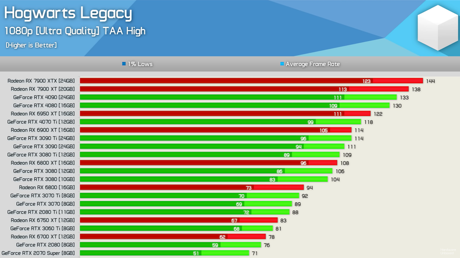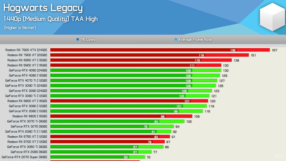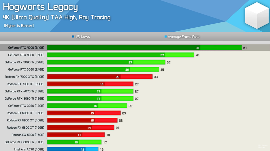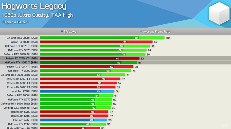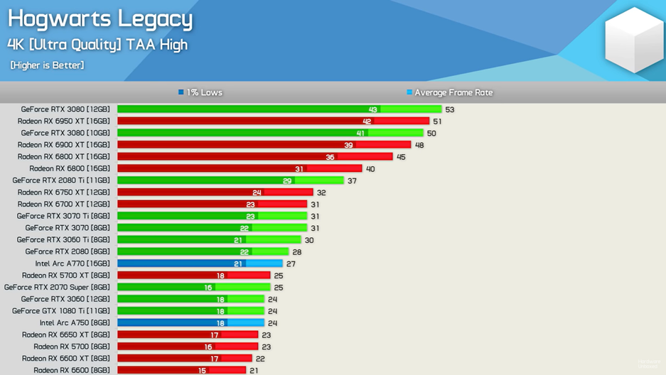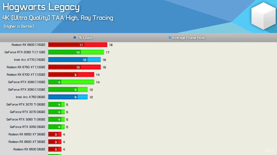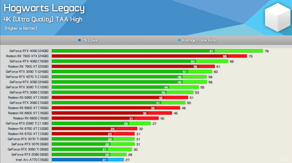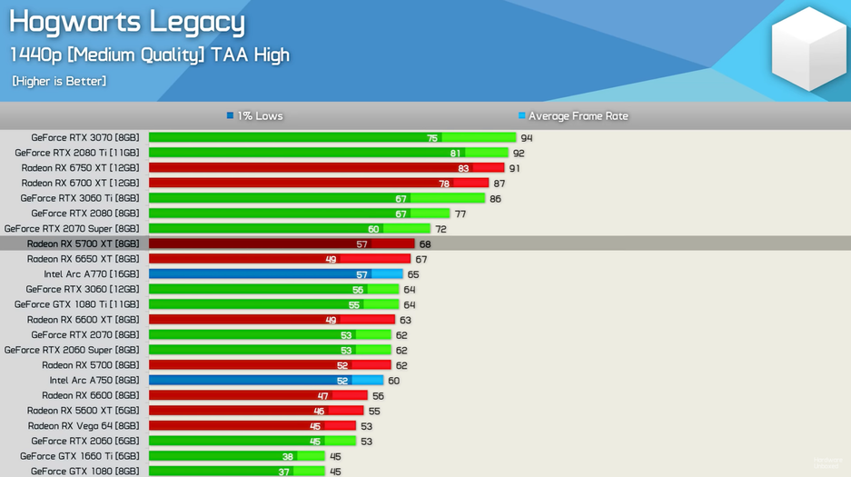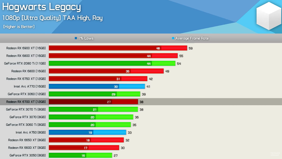 На Hardware Unboxed проверили 53 видеокарты в Hogwarts Legacy. Для работы использовали процессор AMD Ryzen 7 7700X.