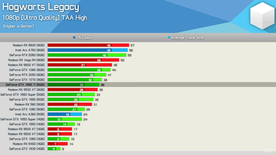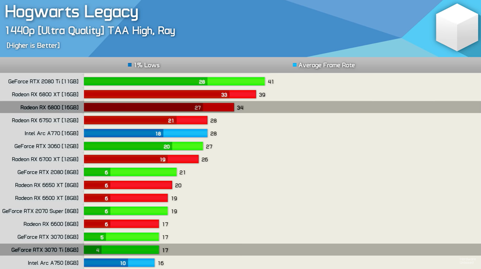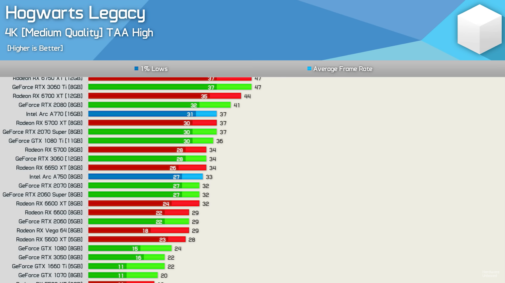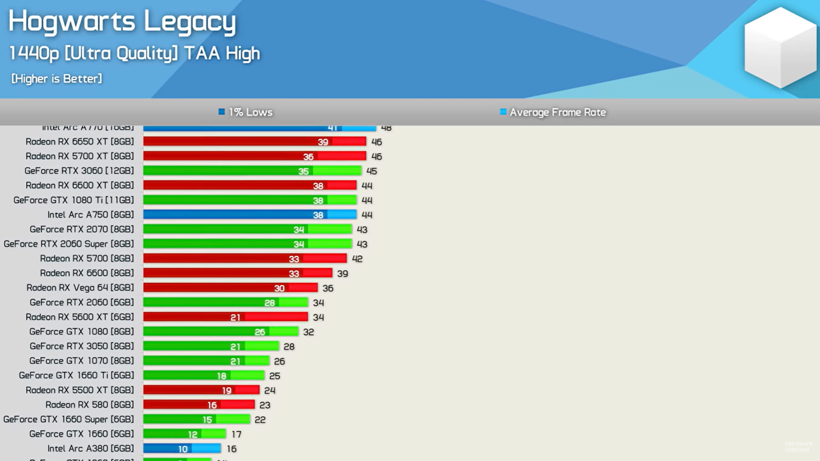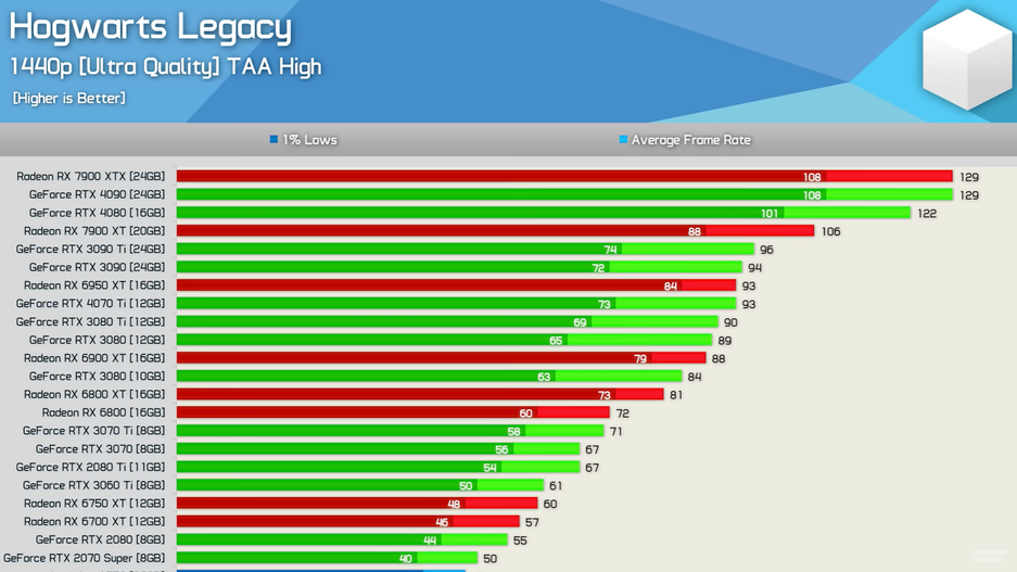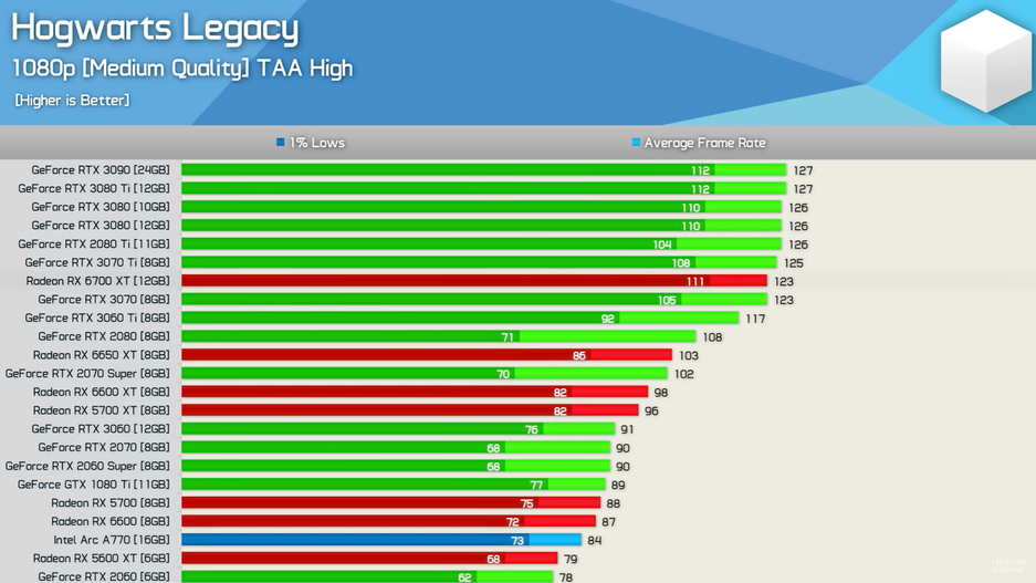 На Hardware Unboxed проверили 53 видеокарты в Hogwarts Legacy. Для работы использовали процессор AMD Ryzen 7 7700X.