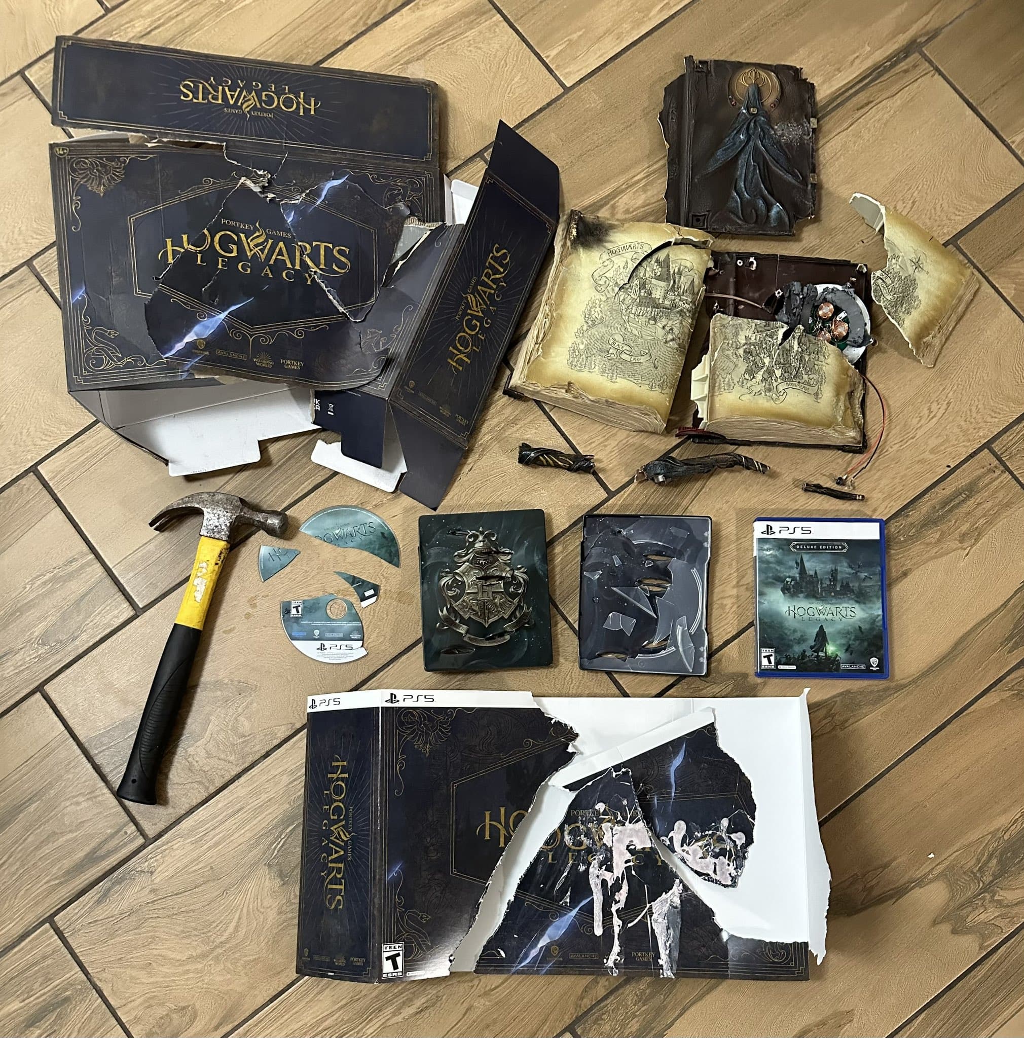 Процесс уничтожения коллекционного издания Hogwarts Legacy.