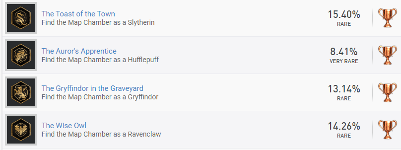 Разработчики Hogwarts Legacy предусмотрели 4 достижения, которые связаны с факультетами: Гриффиндор, Пуффендуй, Когтевран и Слизерин. Это позволяет отследить примерную популярность факультетов.