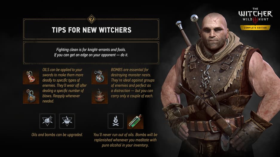 CD Projekt RED решила обратиться к сообществу. Игрокам в The Witcher 3 дали совет — можно использовать масла, чтобы повысить урон по специфическим противниками, а также пустить в дело бомбочки.