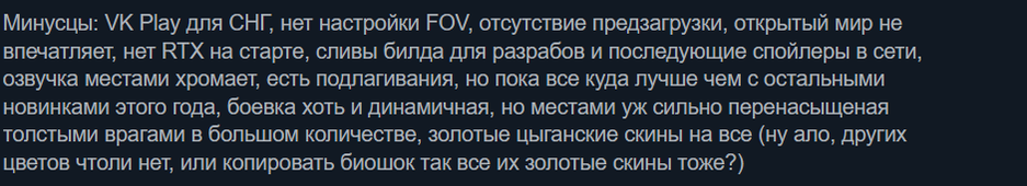 В России и СНГ игру выпустили эксклюзивно в сервисе VK Play, что нашло отражение в обзорах. Кто-то написал отрицательный обзор из-за VK Play (и при этом похвалил саму игру), а кто-то вынес эксклюзивность VK Play в качестве минуса в положительном обзоре.
