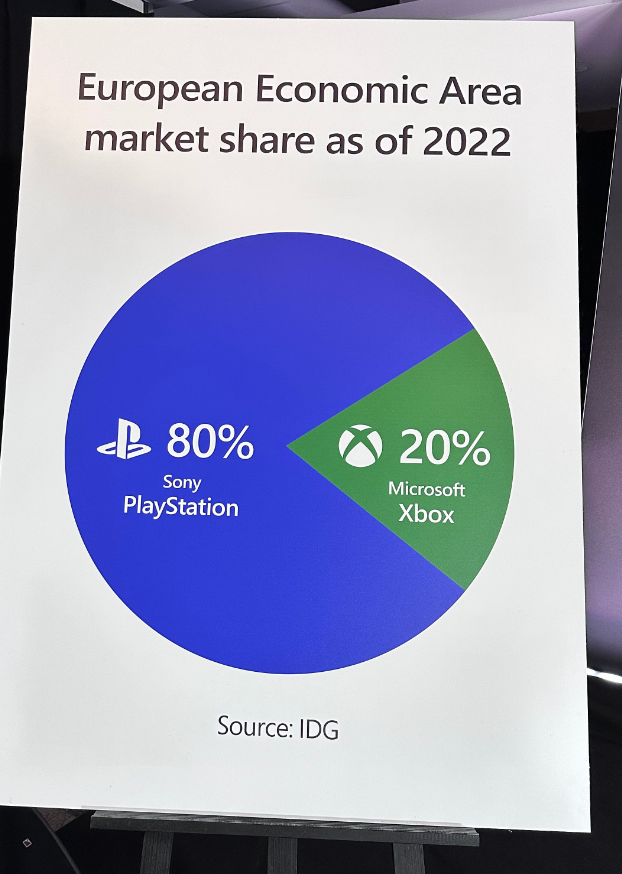 В ходе презентации представители транснациональной компании попытались объяснить, что доля Microsoft на рынке Европы довольно маленькая. Если у Sony PlayStation 80%, то на Xbox приходится лишь 20%.