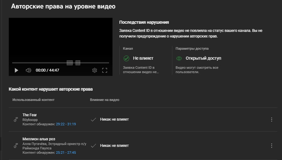 На обоих скриншотах есть упоминание Миллиона алых роз, но по какой-то причине влияние на видео разное.
