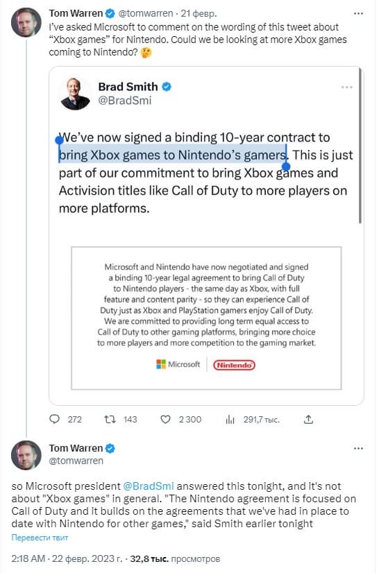 Журналист редакции The Verge находился в Брюсселе, где встретился с Брэдом Смитом. подчеркнувшим, что сделка, заключенная с Nintendo, касается серии Call of Duty: