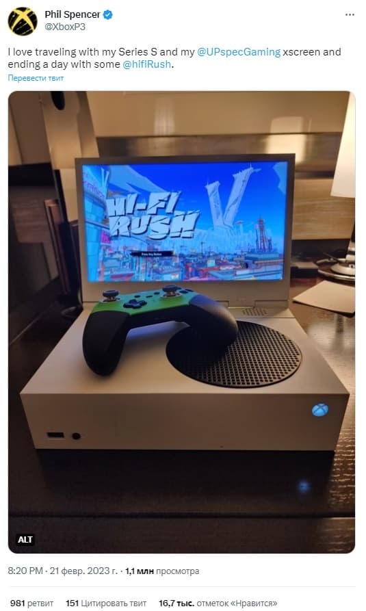 «Мне нравится путешествовать со своей Series S вместе с Xscreen от UPspecGaming и заканчивать день Hi-Fi Rush».