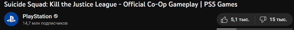 Демонстрация игрового процесса Suicide Squad Kill the Justice League получила порядка 15 тысяч дизлайков при 5.1 тыс. лайков.