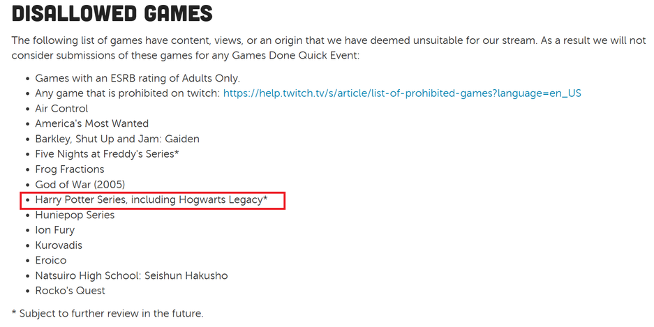 Сейчас у некоторых представителей сообщества складывается ощущение, что решение о запрете Hogwarts Legacy и игр о Гарри Поттере на Games Done Quick простая показуха.