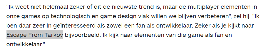 Среди конкретных примеров прозвучало название Escape from Tarkov. Знаменитый шутер интересует Миядзаки не только как разработчика, но и как фаната.
