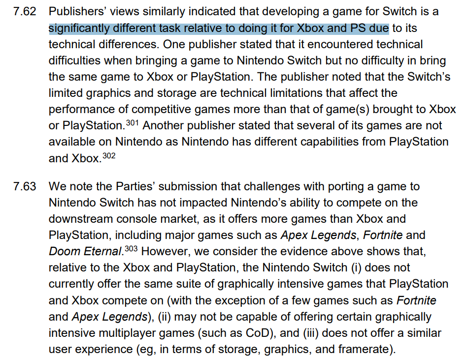 CMA аргументировала позицию показаниями неких анонимных издателей. Они сообщили о трудностях при создании портов для Nintendo Switch, а вот в случае с PlayStation или Xbox подобных проблем не возникало.