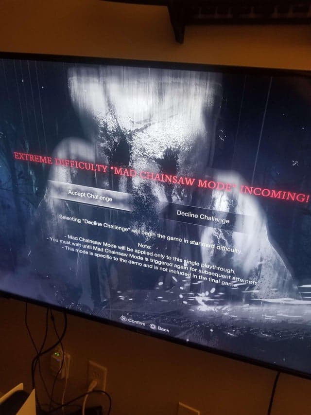 Дополнительную проблему Resident Evil 4 Mad Chainsaw Mode создаёт тем, что у игрока нет возможности спокойно тренироваться в этом режиме. После смерти игра заканчивается (предлагают только опцию Выйти) и приходится снова перезапускать демку, пытаясь выбить желанное предложение.