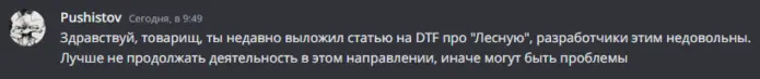 «Лучше не продолжать деятельность в этом направлении, иначе могут быть проблемы».