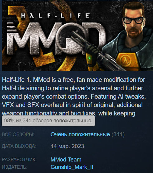 У Half-Life MMod 98% положительных отзывов, ознакомиться с проектом можно бесплатно в Steam по ссылке.