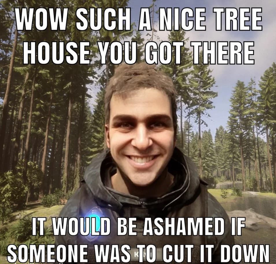 В Sons of the Forest у игроков есть ИИ-помощник Кельвин. Из-за особенностей работы ИИ он мог уничтожить дом игрока, когда отправлялся рубить деревья (если база располагалась на дереве, то Кельвина это ничуть не беспокоило).