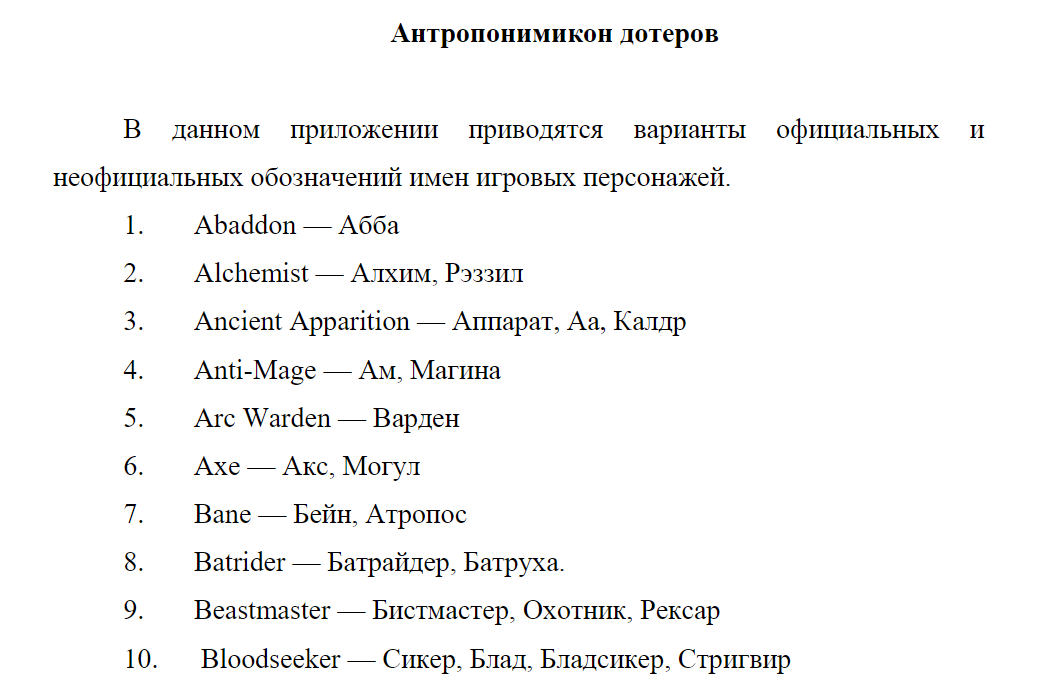 Работа «Язык дотеров (на материале компьютерной онлайн-игры "Дота-2")» доступна в открытом доступе по ссылке. Ниже представлены некоторые фрагменты работы.