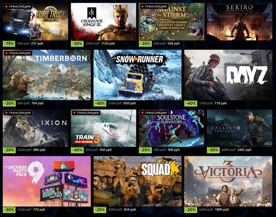 Хотя в России значительная часть игр Западных и не только издателей пока не продаётся, но всё же есть интересные предложения. Например, игры SCS Software и Paradox Interactive и дополнения к ним получили скидки.
