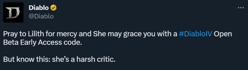 Фанатам Diablo надо молиться Лилит, которую можно было увидеть в промо-материалах Diablo 4. Публиковать молитвы надо в ответах на пост аккаунта франшизы Diablo в социальной сети Twitter.
