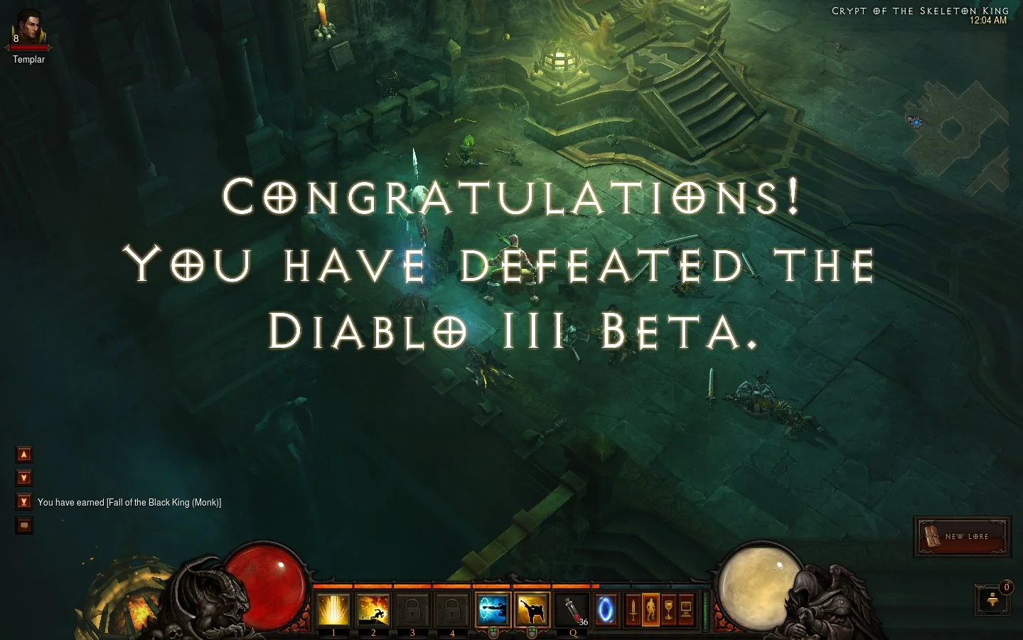 Если раньше Blizzard поздравляла с победой участников беты Diablo 3 большим текстовым сообщением на экране, то теперь игрокам в лицо швыряют огромный баннер в стиле мобильных игр.