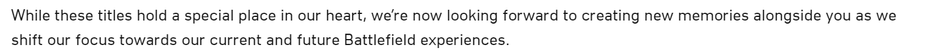 Отметили, что в Battlefield Bad Company 1 и 2 и Mirror's Edge можно будет по-прежнему играть дальше, есть автономные режимы (одиночная игра, кампания).