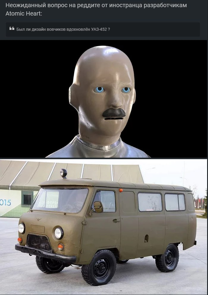 Некоему пользователю-иностранцу стало интересно, а вдохновлён ли дизайн роботов Вовчиков (ВОВ-А6 или Лаборант) автомобилем УАЗ-452.