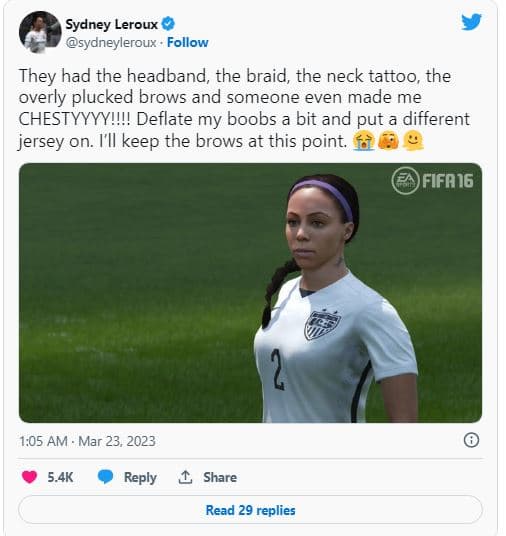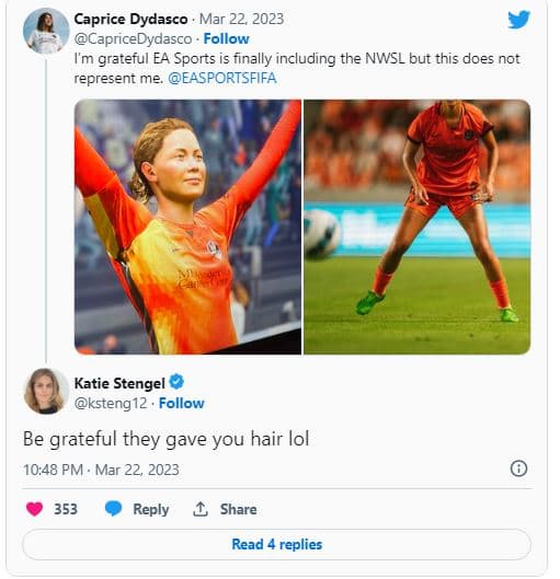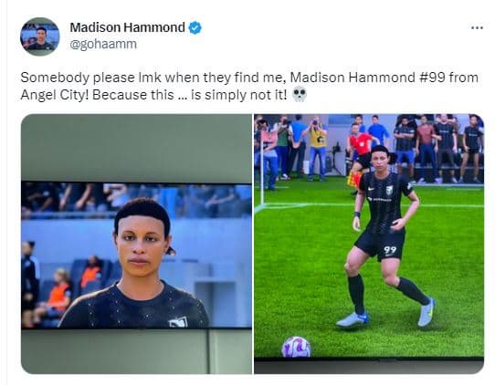 «Я рада, что EA Sports наконец-то добавила NWSL, но я совсем на себя не похожа», — пишет Каприс Дидаско, играющая за Хьюстон Дэш.