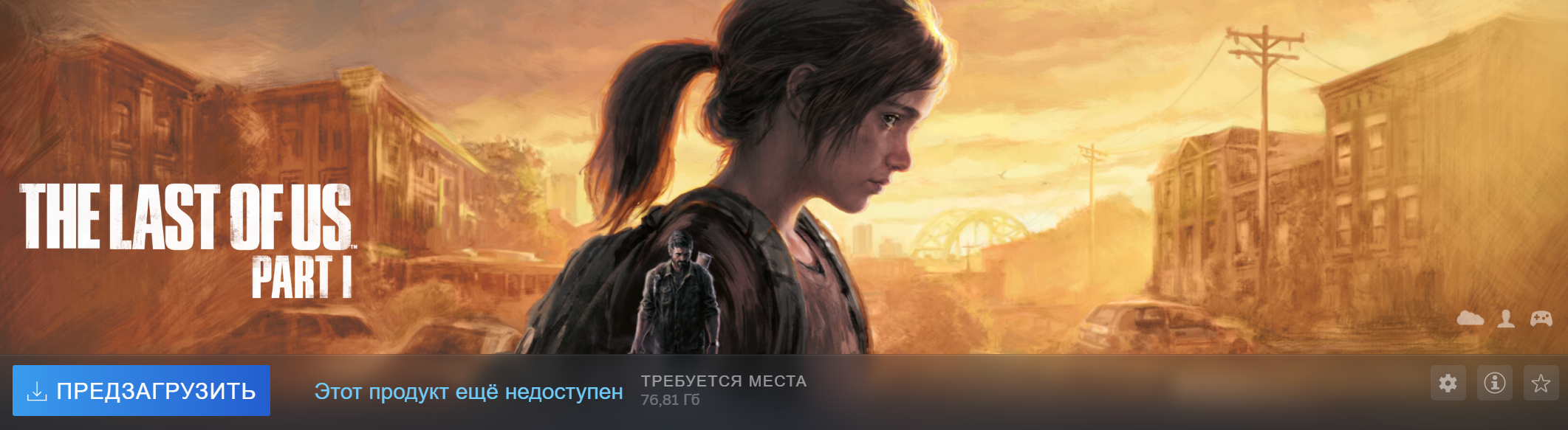 В Steam началась предзагрузка The Last of Us Part 1. Сообщают, что игре требуется 76.81 ГБ (в системных требованиях писали про 100 ГБ и рекомендовали использовать SSD).