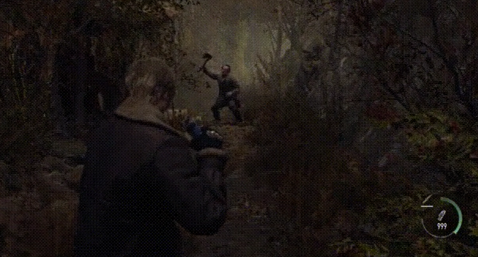 Враги в ремейке Resident Evil 4 могут метнуть в Леона Кеннеди топор. Вполне логично, что игрок начинает рефлекторно приседать, когда видит анимацию замаха, чтобы топор пролетел над головой (хотя некоторые предпочитают парировать, нож в обычных условиях всё же не бесконечный). Похоже разработчики подготовились и решили наказывать тех, кто решит, что этот способ всегда защитит от попадания.